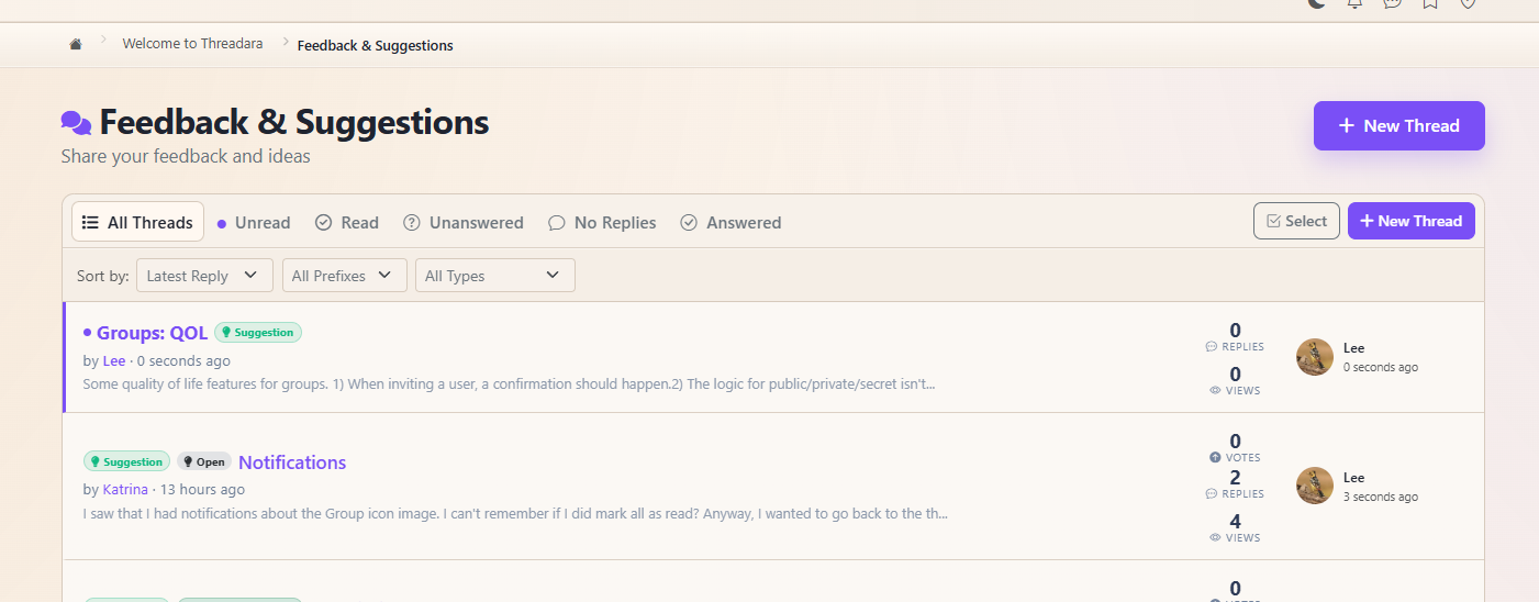 When creating a thread using the quick thread form, the inserted row does not quite display correctly.